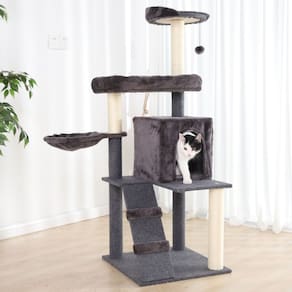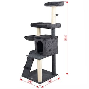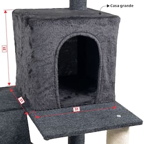 Desenhado por pessoas apaixonadas por gatos, esse luxuoso arranhador é composto por: Casa grande, duas camas espaçosas, sendo uma com encosto lateral e outra com borda macia, cesto, poleiro, base, escada e brinquedo em balanço no formato de bolinha.