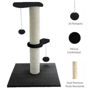 Especificações: - Medidas totais: 40x40x60cm (CxLxA) - Recomendado para gatos adultos e filhotes - Ajuda no desgaste de unhas e estimulam brincadeiras - Referência: 20289 - Cor: Preto