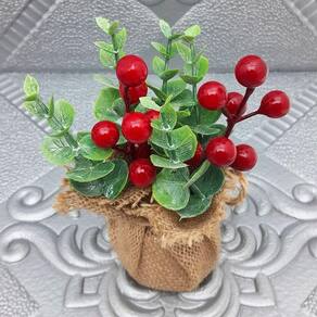 Arranjo Cereja Pinha Artificial Vaso Enfeite Mesa Natal 15cm Frutas