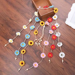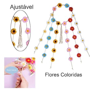Arranjo de Cabeça Coroa de Girassóis Coloridos Acessório de Cabelos Hippie - Festa Fantasia Casamento Carnaval. Kit ideal para compor sua fantasia, composto por: 1 lindo arranjo de cabeça ajustável em flores pequenas, delicadas coloridas. Coroa formada por delicado trançado com aplicação de pequenas margaridas e girassóis, formando um arranjo com design diferenciado e sofisticado. Ideal para compor aquela fantasia ou mesmo para arranjo de cabeça em um casamento no campo. Tamanho aproximado: 50 cm de comprimento. Atenção: Produto de alta rotatividade. Recebemos novas remessas semanalmente e algum detalhe pode variar conforme o lote recebido, porém o produto é o mesmo e mantém as mesmas características e qualidade. Contém: 1 arranjo de cabeça ajustável. Fotos ilustrativas e reais do produto. Não acompanha fantasia. Marca: Happy Party