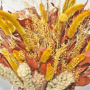 Todos os nossos arranjos e buquês são criados com flores naturais desidratadas artesanalmente. Por ser um processo manual, isso garante que cada arranjo seja único em sua composição.