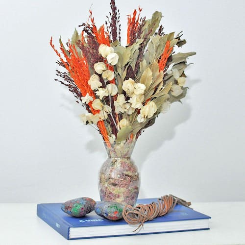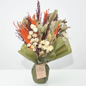 Todos os nossos arranjos e buquês são criados com flores naturais desidratadas artesanalmente. Por ser um processo manual, isso garante que cada arranjo seja único em sua composição.