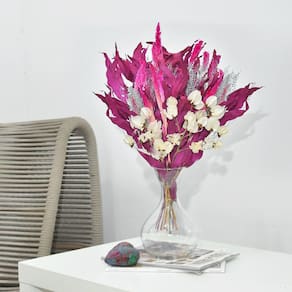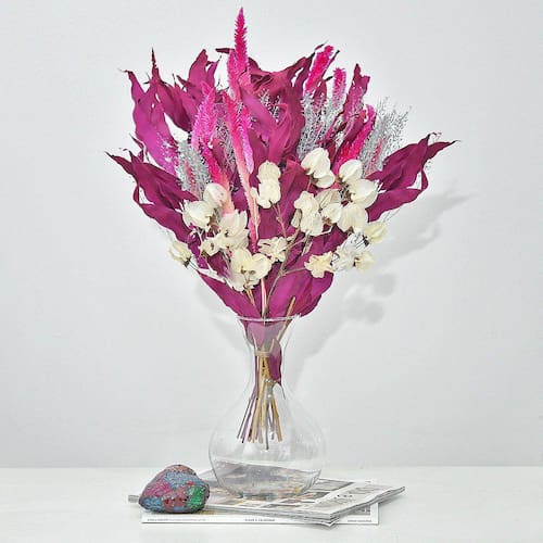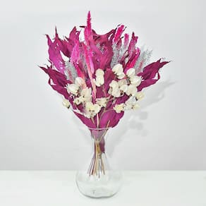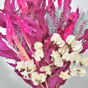 Todos os nossos arranjos e buquês são criados com flores naturais desidratadas artesanalmente. Por ser um processo manual, isso garante que cada arranjo seja único em sua composição.