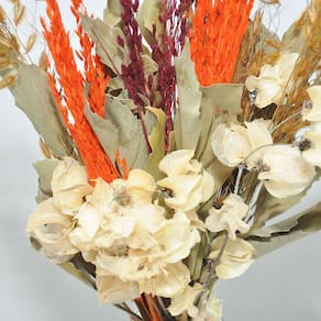 Todos os nossos arranjos e buquês são criados com flores naturais desidratadas artesanalmente. Por ser um processo manual, isso garante que cada arranjo seja único em sua composição.