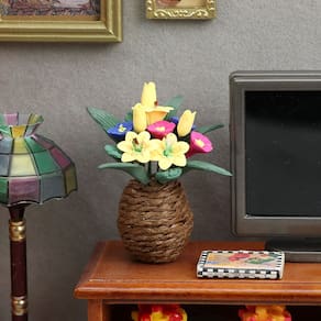 Tamanho: diâmetro inferior do vaso 1,5 cm, altura total 5,5 cm Material: vaso: tecido, flor: resina Peso: peso líquido 6,5 g Charmoso vaso de flores em miniatura: apresenta um arranjo colorido de lírios amarelos, tulipas e flores variadas em um vaso de tecido, adicionando detalhes realistas à casa de bonecas ou cenas em miniatura. Perfeito para casas de bonecas em escala 1:12: especialmente projetada para casas de bonecas em escala 1/12, esta decoração floral aprimora o interior ou o jardim de sua mini casa de teatro. Aviso de brinquedos não infantis: Não é adequado para crianças menores de 3 anos. Por favor, mantenha-se afastado de crianças pequenas para evitar possíveis riscos de asfixia. Ótimo para brincar de fingir: acessório ideal para brincadeiras criativas, trazendo realismo e charme a jardins de casas de bonecas, pátios ou cenas decorativas internas. Construção durável em resina e vaso de tecido: feita com flores de resina de alta qualidade e um vaso resistente em estilo tecido, esta miniatura foi projetada para uso duradouro em coleções.