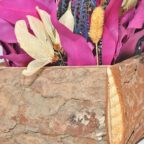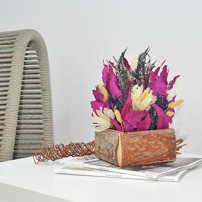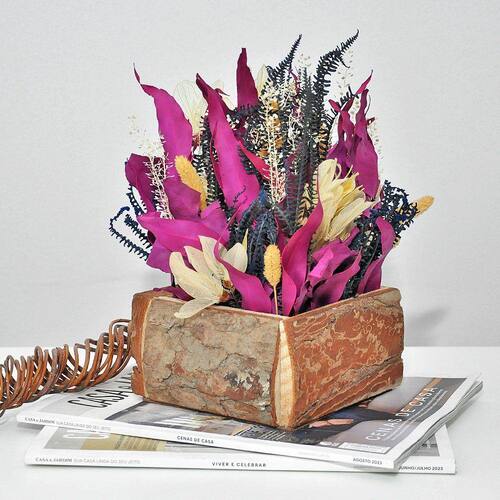 Arranjo de flores naturais desidratadas cachepô de madeira rústico