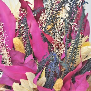 Todos os nossos arranjos e buquês são criados com flores naturais desidratadas artesanalmente. Por ser um processo manual, isso garante que cada arranjo seja único em sua composição.