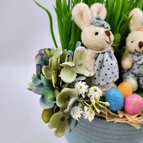 - Qualidade Premium: Utilizamos apenas as flores permanentes de mais alta qualidade, garantindo a beleza deste arranjo ao longo da temporada de Páscoa.