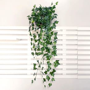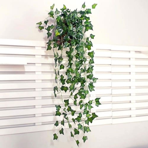 - Galhos de fio aramado revestidos com plástico, com folhas verdes de Hera em pendente