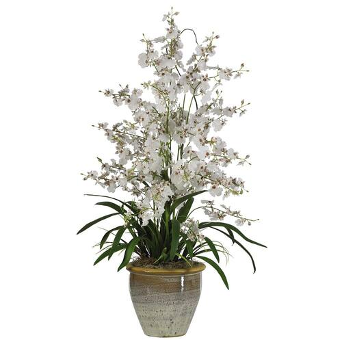 Arreglo de flores de seda Nearly Natural Triple Dancing Lady - Cuenta con tres tallos llenos de flores - La base está llena de una rica mezcla de follaje - Hermosa maceta de cerámica con estilo - Tamaño de la maceta: 21.6 cm de ancho x 17.8 cm de alto