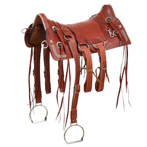 Arreio Completo modelo 1008 Executivo da marca A Pantaneira, utilizado em Muares e Cavalos, fabricado em couro com detalhes em bordados e costuras reforçadas, detalhes em tentos de couro, margaridas de metal e inervos costurados em toda a peça, assento em couro e tamanho livre de 19'', travessão móvel em couro com bordados, argolas em aço inox, armação em chapa de ferro e suador com enchimento em serragem, revestimento em couro e bordas em nylon costurado.