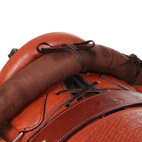 Arreio da marca A Pantaneira modelo Banana Especial, utilizado em Muares e Cavalos, fabricado em couro de alta qualidade, tentos em couro, costuras reforçadas e trançados em couro em volta da peça, Argolas em aço Inox, área do assento com tamanho livre de 17". Travessão removível em couro com costuras reforçadas, alça na parte frontal e suador com enchimento em feno revesido em couro e bordas em nylon costurado.