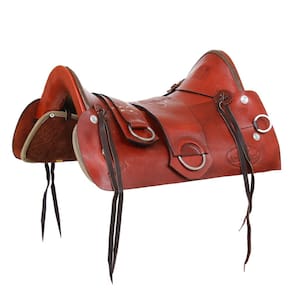 Arreio A Pantaneira modelo Junco, utilizado em Muares e Cavalos, fabricado em couro nobre com detalhes em costuras reforçadas, acabamento em tentos em couro, assento em couro com costuras reforçadas e tamanho livre de 17", travessão móvel em couro, argolas em aço inox, armação de madeira revestida em inervo e acabamento do suador com enchimento em serragem, revestimento em couro e bordas em nylon costurado. Fino acabamento.