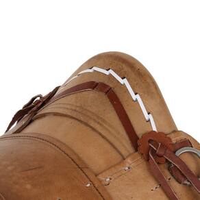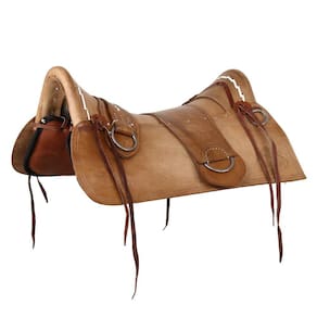 Um Arreio da marca A Pantaneira modelo São José, utilizado em Muares e Cavalos, fabricado em couro nobre com detalhes em costuras reforçadas, tentos em couro nas laterais, assento em couro com tamanho livre de 18", travessão fixo, ferragens em aço inox, armação de ferro revestida em inervo, acabamento do suador com enchimento em capim e revestimento em couro com bordas em nylon costurado.