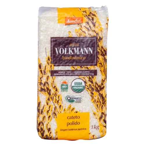 O Arroz Cateto Polido Orgânico Biodinâmico Demeter Volkmann é o arroz em que, ao passar pelo processo de beneficiamento, são retirados a casca, a película e o germe, restando apenas o endosperma. É produzido sem agrotóxicos, adubos químicos ou conservantes.