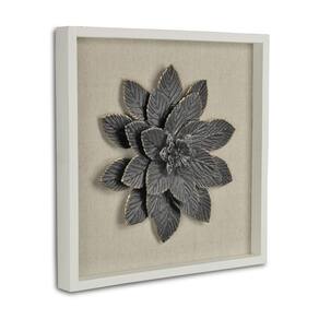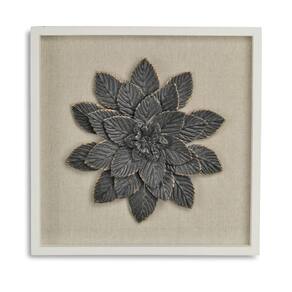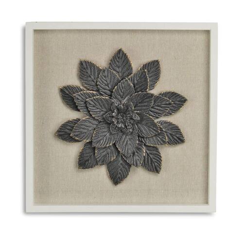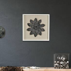 Decoração de parede com flor de metal preto Cheung com moldura de madeira, branca