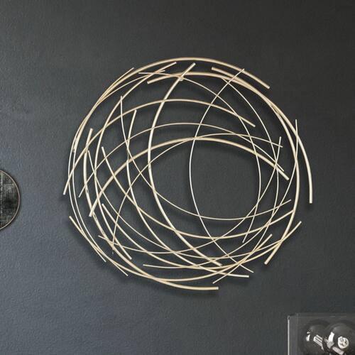 Arte de parede abstrata de metal redondo Cheungs Denine - Escultura moderna de ouro de 25" feita à mão para sala de estar