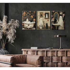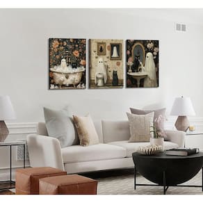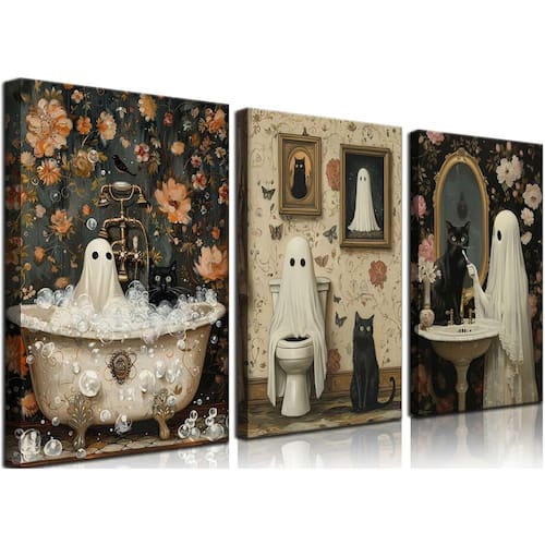 arte de halloween engraçada decoração de banheiro fantasma gato preto pôster de parede humor assustador piada de banheiro estampa fantasmagórica fofa amante presente gótico escuro academia outono vitoriano jardim peculiar para jardineiro - Arte exclusiva: abrace o espírito do Halloween com nossa cativante coleção "Halloween Wall Art". Feitas em vários tamanhos, incluindo 30 x 40 cm, 40 x 61 cm, essas obras de arte infundem seu espaço com uma atmosfera festiva perfeita para reuniões de Halloween - Charming Ghost Designs: explore nossa série "Ghost Wall Art", onde designs encantadores com temas fantasmas ganham vida. Adicione um toque de charme outonal e calor à sua decoração de Halloween com essas obras de arte encantadoras - Embrace the Dark Academia Aesthetic: Mergulhe na essência da academia escura com nossas peças de decoração. Seja o fascínio de livros vintage, arte clássica ou charme intelectual, nossa arte de parede fantasmagórica complementa essa estética, criando uma atmosfera de mística intelectual - Criatividade interessante: escolha obras de arte de pintura fantasmagórica para se despedir da sala volumosa e realçar a beleza do espaço. Os pôsteres em tela podem decorar melhor seu quarto e também podem ser utilizados em aniversários, inaugurações de casa, formaturas, aniversários, Ação de Graças, Natal como uma surpresa para seus amigos, familiares, vizinhos, colegas e parceiros - Atendimento ao cliente: Estamos comprometidos em fornecer aos clientes produtos e serviços de alta qualidade. Se você tiver alguma dúvida sobre as fotos de decoração de parede de fantasma gótico romântico e fashion recebidas, sinta-se à vontade para entrar em contato conosco