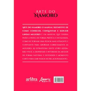 Arte do namoro: o manual definitivo de como conhecer, conquistar e seduzir lindas mulheres é um manual que ensina passo a passo, de forma prática e detalhada, como se tornar uma pessoa mais atraente e confiante para abordar corretamente as mulheres. As estratégias deste livro ajudarão você a despertar o interesse da mulher de forma natural e entender o momento certo para dar passos no relacionamento.