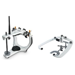 Apresentação Benefícios Estrutura robusta feita em alumínio, garantindo maior estabilidade. Seu design proporciona excelente visibilidade do modelo de gesso. O desenho do ramo inferior permite inclinação em 45 e a abertura total dos ramos sem a separação ou desmontagem do articulador. Características Articulador não padronizado, Com estojo Arco Facial SemiajustávelArcon Distância intercondilar fixa (110mm) Guia condílica curva Regulagem do ângulo da guía Condílica Regulagem do ângulo de Bennet Trava Central Com Arco Sistema estabilizador dos movimentos com junção de silicone. Aplicação Os articuladores têm como objetivo reproduzir as posições maxilomandibulares estáticas e dinâmicas com as seguintes finalidades: Estudo da oclusão, de patologias oclusais e planejamento para confecção de próteses Confecção de próteses fixas, totais, removíveis ou aparelhos interoclusais (placas).