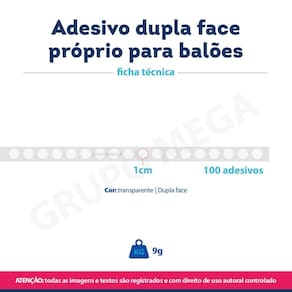 Rolo de fita dupla face com 300 gotas pontos próprio para colar balões de festas Faça da sua festa de aniversário um verdadeiro espetáculo Com nossos artigos de festas, você poderá criar decorações incríveis, cheias de cores e alegria. As crianças vão se encantar com a magia que os balões trazem para a festa Características: Super fácil de usar Ideal para colar um balão no outro Pode ser Utilizado para colar balões em paredes ou outras superfícies Super fácil de retirar da parede Permite você criar arranjos e decorações personalizadas incríveis e em pouco tempo Compatível com diferentes tamanhos de bexigas Compatível com balões laminados, bubbles e balões de látex Especificações técnicas: Marca: GH3 Modelo: Fita dupla face para balões Quantidade: 3 rolos Quantidade de adesivos por rolo: 100 Cor: Transparente Circunferência de cada adesivo: 1cm Como usar fita gota dupla face para colar balões: Corte uma ponta de adesivo ainda com o papel Cole-a na superfície do balão Retire o papel protetor Cole o balão onde desejar Transforme sua festa em um evento inesquecível com nossos artigos especiais para festas. Deixe sua imaginação voar alto e garanta agora o sucesso do seu evento Obrigado pela visita e boas compras ATENÇÃO Nossas imagens e textos são registrados e com direito de uso autoral controlado e reservado a essa loja e as lojas parceiras devidamente autorizadas em contrato. Marca: Não Informado