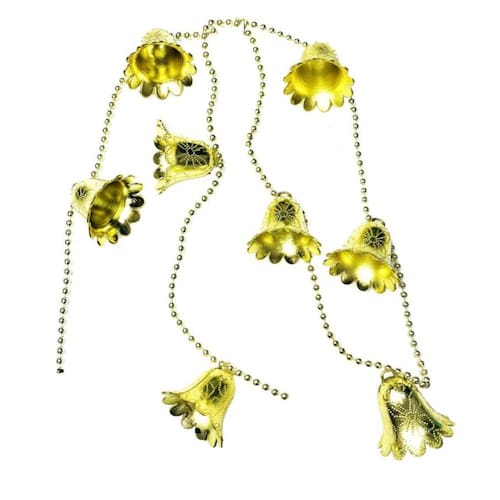 QUANTIDADE: 1 CORDAO DE 90 CM COM 8 SININHOS COR: OURO. DIMENSOES: 3CM X 3CM. MATERIAL: PLASTICO. MODELO: CORDAO SININHO DE NATAL MARCA: V.M.P PRODUTO IMPORTADO: CHINA.