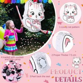 Características: Estes suprimentos de festa de aniversário para gatos podem ser aplicados em uma variedade de ocasiões, como festas de aniversário, festas de fim de ano, festas temáticas de gatinhos e assim por diante, adicionando uma atmosfera festiva e alegre a essas ocasiões. Você pode enviar essas decorações de aniversário de menina para seus familiares ou colegas de classe no feriado ou aniversário, como presentes distintos, para mostrar sua bondade e preocupação e promover seus relacionamentos. Especificações: Material: papel Cor: como mostrado na imagem. Tamanho da piñata: como mostrado na imagem A embalagem inclui: 1 x Kitty Piñata 1 venda 1 vara. 1 confete Observações: Medição manual, permita pequenos erros no tamanho. A cor pode existir uma ligeira diferença devido a diferentes ecrãs. Adequado para pessoas com mais de 12 anos, use-os sob a supervisão de adultos. - Conjunto de combinação temática de gatinho: o pacote contém 1 peça de piñata de gatinho, 1 peça de venda, 1 pedaço de pau e 1 pacote de confetes, principalmente nas cores rosa, branco e preto, bonito e bonito, suficiente para atender às suas várias demandas - Armazena muitos itens: o animal Piñata está em tamanhos adequados, adequado para encher com doces, pipoca, chocolates, confetes ou belos papéis coloridos, trazendo uma experiência de uso interessante - Traga muita diversão: você pode colocar alguns doces ou pequenos presentes na pequena Piñata, depois colocar a venda e usar o palito para quebrar a Piñata, para que os doces e presentes sejam derramados, o que pode adicionar mais diversão e felicidade à festa - Acabamento requintado: nossa piñata temática de fazenda para aniversariante é feita de material de papel de qualidade, leve e confiável, com uma aparência adorável e cores brilhantes, difícil de desbotar ou deformar, e pode fornecer um serviço de longo prazo - Bela decoração para sua casa: estas piñata para meninas podem ser penduradas no teto, janela, parede, para decorar seu quarto ou sala de estar e trazer um bom prazer visual; também pode servir como adereço fotográfico, versátil de usar