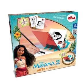 Base completa para ensinar a desenhar com cartelas com 4 Personagens diferente da Moana, para fazer desenhos Incríveis. Desenvolve o raciocínio, coordenação motora e estimula os sentidos e a criatividade da criança. Vem com lápis e bloco de papel. No QRcode da embalagem vem desenhos de outros personagens e você pode apoiar na base seu celular, o que possibilita desenhar o que quiser!*As cores do produto podem variar das apresentadas nas fotos. Conteúdo da Embalagem: 6 peças plásticas, 2 cartelas com 4 desenhos, 1 lápis, 1 bloquinho de folhas (A5), adesivos