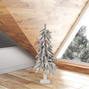 Vickerman Árvore de Natal artificial alpina flocada, luzes LED Dura-Lit multicoloridas - Árvore falsa coberta de neve - Decoração de casa interna sazonal - Porta-malas de madeira verdadeira
