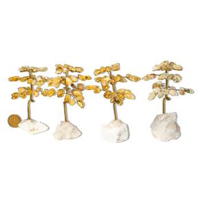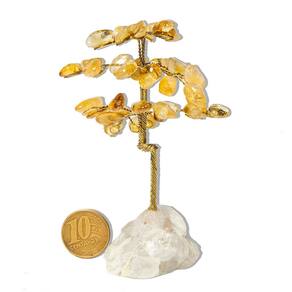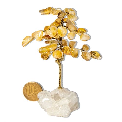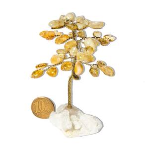 Árvore Decorativa com Pedra Citrino Rolada e Base de Drusa de Cristal – Feita à Mão Árvore artesanal feita com pedras naturais de Citrino rolado, cuidadosamente coladas em galhos de arame torcido, com tronco fixado em uma base de drusa de cristal. Cada peça é única, produzida manualmente com atenção aos detalhes. Ideal para decoração de ambientes ou como presente simbólico. Características do Produto: