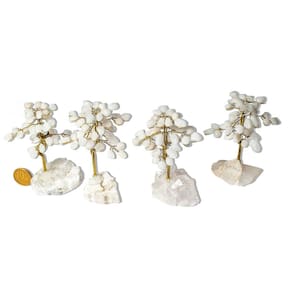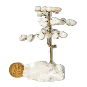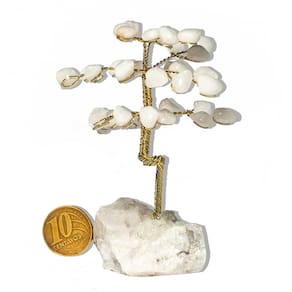 Árvore Decorativa com Quartzo Leitoso – Base de Drusa de Cristal | Feita à Mão Árvore decorativa artesanal feita com pedras naturais de Quartzo Leitoso rolado. As pedras são cuidadosamente coladas em galhos de arame torcido, fixados em um tronco do mesmo material. A base é composta por uma drusa de cristal, garantindo estabilidade e um visual elegante. Cada peça é produzida manualmente com atenção aos detalhes, o que a torna única. Ideal para decoração de ambientes ou para presentear alguém especial.