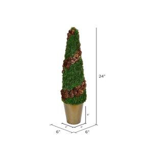 Árvore de cedro artificial Vickerman Everyday de 24 polegadas — Topiária de cedro verde em forma de cone em vaso com detalhes em pinha — Decoração falsa de Natal para casa interna