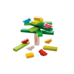 Auxilia a desenvolver coordenação motora fina. Vence o jogador que conseguir empilhar e equilibrar a árvore e o pássaro sem derrubá-los. O conjunto contém onze peças de árvores e seis pássaros.