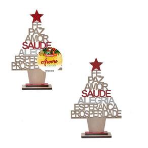 Árvore De Natal Madeira Desejos Fé Paz Amor Saúde Cor: Vermelho Árvore de madeira Desejos 18cm - Zein