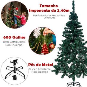 Transforme seu Natal em um verdadeiro espetáculo com essa magnífica Árvore de Natal de 2,40 metros, ideal para ambientes amplos, como salas de estar, escritórios ou áreas comerciais. Com 600 galhos, esta árvore se destaca por sua aparência natural e grandiosa, proporcionando uma base perfeita para a decoração natalina dos seus sonhos. Galhos Reforçados e Sustentação Duradoura Projetada para durar, esta árvore conta com galhos robustos, permitindo que você decore de forma criativa e sem preocupações. Seu pés de metal resistentes garantem estabilidade e firmeza, mantendo a árvore bem posicionada ao longo de toda a temporada de festas. Design Tradicional na Cor Verde A cor verde vibrante e clássica traz a essência do Natal, remetendo à elegância das árvores naturais. Com seu tamanho imponente e estrutura bem detalhada, esta árvore se adapta perfeitamente à decoração natalina tradicional ou moderna, tornando-se o centro das atenções. Se você procura uma árvore de Natal que combine beleza, resistência e presença marcante, esta é a escolha perfeita para fazer o seu Natal inesquecível Marca: Não Informado