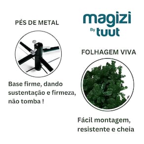 Recomenda-se ajustar os galhos manualmente após a montagem para atingir a aparência cheia e natural desejada.