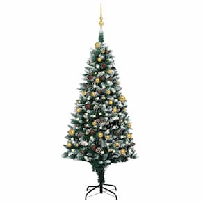 Esta árvore de Natal pré-iluminada tem 70,9 polegadas de altura, tornando-a um ponto focal fantástico para sua decoração natalina. Seu design de PVC verde exuberante imita uma árvore real, completa com bolas decorativas e luzes quentes para criar uma atmosfera festiva. É adequado para uso interno e externo, tornando-o ótimo para qualquer espaço durante a época do Natal e garantindo uma recepção calorosa em sua sala de estar ou jardim.