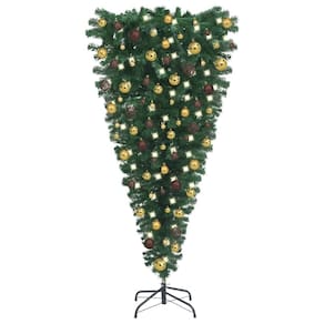 Esta árvore de Natal, feita de PVC, é muito realista em sua forma e aparência. Graças aos galhos ajustáveis, você pode moldar sua árvore em uma ótima forma. O suporte de aço incluído oferece estabilidade ideal à sua árvore. Além disso, o design de cabeça para baixo a torna uma peça central atraente de suas decorações de Natal. A árvore de Natal pode ser usada novamente todos os anos, o que a torna uma escolha muito econômica em comparação com uma árvore real. Com luzes LED de eficiência energética, acende lindamente e cria uma atmosfera aconchegante de férias. Além disso, decorada com o belo pico e bolas, esta árvore de Natal será atraente em sua casa.