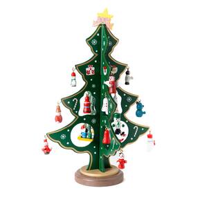 Medida: 25 cm de Altura Material: Madeira Contém: 20 Enfeites / 01 Base / 2 Peças de encaixe da árvore Cor: Verde Ean: 7899658308919