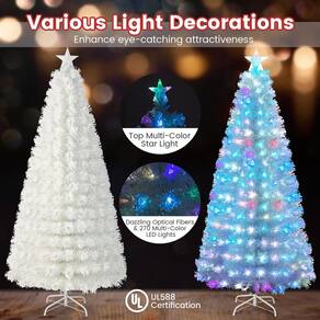 Descrição Crie um paraíso mágico de inverno com nossa árvore de Natal de fibra óptica pré-iluminada branca de 5/6/7 pés. A aparência toda branca, a neve flocada e as pontas dos galhos exuberantes dão a esta árvore uma aparência incrivelmente realista. Além disso, as luzes brilhantes de fibra óptica criam um ambiente mágico, enquanto as luzes LED coloridas e a luz estelar multicolorida superior adicionam um toque extravagante. Além disso, fabricada com material 100% PVC e projetada para ser resistente a chamas, esta árvore garante beleza e segurança. E vem com uma base metálica cruzada, mantendo a árvore na posição vertical e evitando quebras. Versátil e perfeita para várias ocasiões, esta árvore é ideal para sua casa, escritório ou como um presente de Natal atencioso. Experimente a alegria e o encanto da temporada com nossa árvore de Natal de fibra óptica branca. Características da característica 170/220/270 pontas de galhos exuberantes, criando uma aparência luxuosa e deslumbrante O design repleto de neve e a aparência totalmente branca adicionam um toque do charme do paraíso do inverno à sua árvore As luzes de fibra óptica dão um brilho hipnotizante, adicionando uma tela de iluminação mágica Adota luzes LED premium com certificação UL588 e um adaptador seguro com certificação UL As folhas de PVC não requerem manutenção, são retardantes de chamas e seguras A base de metal cruzado é fixado por 3 parafusos reforçados, garantindo boa robustez. O dobrável a base de metal cruzado é fácil de separar para economizar espaço. Com almofadas antiderrapantes, proteja o chão contra arranhões. Pode ser usada em vários ambientes, incluindo residências, escritórios e espaços comerciais Cor da especificação: branco Material: PVC, neve flocada, metal, fibra óptica Altura da árvore: 5 pés, 6 pés, 7 pés Largura da árvore: 2,3 pés, 2,6 pés, 2,9 pés Diâmetro do suporte de metal: 14,5 polegadas, 18 polegadas, 7 pés 20 polegadas Número de seções: 2 Peso líquido: 8 libras, 11,5 libras, 15 libras O pacote inclui: 1 x fibra óptica branca pré-iluminada Árvore de Natal 1 x Manual do usuário - Aparência impressionante e vívida - A árvore de Natal artificial de 7 pés apresenta 270 pontas de galhos exuberantes, apresentando uma aparência luxuosa. Além disso, é coberto por neve flocada realista e adota uma aparência branca vívida, criando uma atmosfera de inverno romântico em sua casa. - Várias decorações de luz - A árvore de Natal pré-iluminada é adornada com fibras ópticas deslumbrantes e 270 luzes LED multicoloridas, proporcionando um show de luzes hipnotizante que cativará a atenção de todos. Além disso, existe uma luz estelar multicolorida superior, aumentando a atratividade atraente. - Material de PVC retardador de chamas - A árvore de Natal artificial é confeccionada com material de PVC 100% novo, que é retardador de chamas, inodoro e não alérgico, garantindo a segurança. E as folhas falsas também são resistentes a rachaduras e ao desbotamento, garantindo o uso a longo prazo. - Base de metal cruzado resistente e estável - A árvore de Natal encorpada é sustentada por uma base de metal cruzado que é conectada ao tronco com 3 parafusos reforçados, garantindo excelente robustez e ótima estabilidade. E existem almofadas antiderrapantes na parte inferior que protegem o chão contra arranhões. - Decoração de Natal perfeita - A árvore de Natal branca iluminada e cheia de neve é adequada para várias ocasiões, como casas, escritórios, escolas, festas, etc. Além disso, você pode espalhar a alegria natalina presenteando-a com seus entes queridos ou usando-a como uma peça central marcante em sua própria casa.