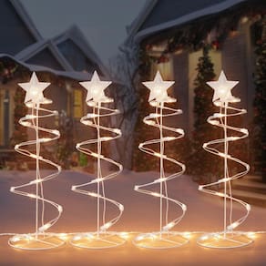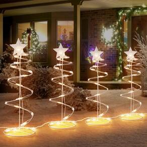 Traga a magia das estrelas cintilantes para sua casa com estas encantadoras luzes de árvore em espiral. Feitas com molduras de arame delicadas que torcem e giram em um padrão espiral hipnotizante, essas decorações luminosas são adornadas com luzes quentes que lançam um brilho suave e radiante. Os tops em forma de estrela adicionam um toque caprichoso, criando uma exibição cativante que preencherá qualquer espaço com um ambiente festivo. Instaladas sem esforço em ambientes internos ou externos, estas luzes de árvore em espiral são a maneira perfeita de iluminar sua decoração de férias ou adicionar um toque de encanto a qualquer ocasião especial. Com seu design elegante e iluminação encantadora, essas luzes de árvore em espiral certamente se tornarão uma parte querida de suas decorações sazonais - Decoração festiva: estas luzes de árvore em espiral adicionam um toque peculiar de férias a qualquer espaço interno ou externo com seu design brilhante e torcido. A árvore de Natal ao ar livre pode ser colocada do lado de fora em seu gramado como decoração de Natal. Esta árvore de Natal iluminada ao ar livre fica linda em seu quintal para o Natal. Esta árvore de Natal em espiral ao ar livre é ótima para sua exibição de Natal ao ar livre, elas ficarão lindas na sua varanda da frente. - Destaques: cada árvore em espiral é adornada com um topo de estrela brilhante e apresenta uma série de luzes quentes e brilhantes. Todas as quatro árvores espirais brancas são conectadas juntas, não podem ser separadas, elas agem como um trio com um plugue. Todas as 4 árvores têm o mesmo tamanho e 500 cm de altura. As luzes incandescentes são muito quentes. As árvores em espiral iluminadas após a configuração ficaram muito boas. Estas árvores em espiral iluminadas ficam tão bonitas à noite quando são iluminadas. Ficam ótimas com neve no chão. - Tela versátil: coloque-as em cima de mesas, prateleiras ou no chão para uma peça central cativante ou exibição atraente. Árvores espirais de Natal ao ar livre ótimas iluminadas para sua exibição de Natal com mini lâmpadas incandescentes claras e quentes. Estas lindas árvores em espiral têm uma boa decoração de Natal ao ar livre. O Natal em espiral dá às decorações de Natal um toque brilhante. A árvore de Natal em espiral é realmente brilhante. Elas dão às decorações de Natal um toque brilhante. - Fácil configuração: basta ligar e aproveitar o ambiente encantador criado por estas luzes de árvore em espiral. As instruções de montagem fornecem a direção para montar a árvore em espiral. Dedique alguns minutos para montá-las pela primeira vez. Todas as quatro árvores precisam ser conectadas juntas e montadas juntas em um monte. Todas as 4 árvores são conectadas em uma corda, basta conectar. Estas são mini lâmpadas iluminadas em um trilho. Árvores em espiral iluminadas ficam fofas em exibição como decoração ao ar livre no deck do seu quintal. - As decorações de Natal ao ar livre são capazes de usá-las ao ar livre durante a temporada de férias de Natal. É perfeito para contornos de jardas na época do Natal. As decorações de Natal de árvore em espiral vêm com estacas de metal para prendê-las ao chão. O produto inclui 4 conjuntos de estacas de metal no total. Feito com materiais resistentes às intempéries para uso duradouro.