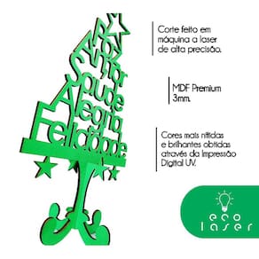 Arvore de natal em MDF Premium 3 mm, pintada de verde frente e verso.