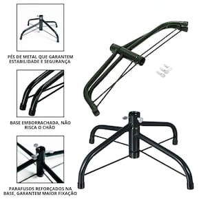 Seu acabamento verde com efeito nevado luxo traz o charme e a delicadeza da neve, criando um clima natalino aconchegante. Possui sistema de abertura fácil com galhos padronizados, o que facilita a montagem e garante um encaixe prático. A base em tripé de ferro reforçado oferece estabilidade e durabilidade, mantendo a árvore firme em qualquer ambiente.