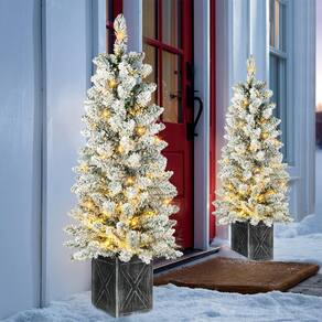- Conjunto de 2 árvores nevadas: celebre a temporada de inverno com esses 2 pacotes de árvores pré-iluminadas. Cada árvore tem 140 galhos realistas em flocos de neve, trazendo o clima de inverno para sua temporada de férias. Também possui uma atraente base em vaso de 7” com cimento no interior, perfeita para uso externo