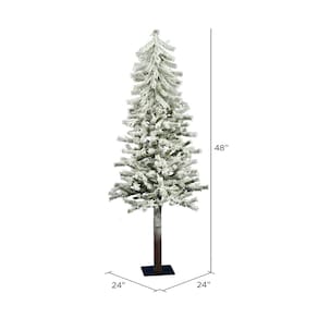 Vickerman Árvore de Natal artificial alpina flocada de 1,4 m x 61 cm - sem iluminação - árvore falsa coberta de neve - decoração de casa interna sazonal - tronco de madeira - pequena árvore decorativa