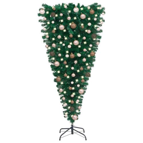 Esta árvore de Natal artificial pré-iluminada de cabeça para baixo é uma escolha peculiar e impressionante para sua decoração natalina, transformando o design tradicional de cabeça para baixo. Foi criado para inverter a norma sobre árvores de Natal, adornado com vibrantes luzes de LED multicoloridas que criam uma atmosfera encantadora, tornando-o uma peça central ideal em sua sala de estar ou corredor durante o período festivo.