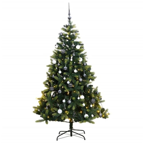 que permite que os galhos se encaixem facilmente para configuração rápida -?Decorações incluídas?: vem com bolas de Natal brilhantes em tamanhos diferentes para uma decoração de Natal completa