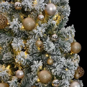 Fácil montagem: a construção articulada facilita a montagem rápida e fácil seu tempo e esforço - Elementos decorativos: Adornado com neve branca artificial e diversas bolas de Natal brilhantes, realçando o charme festivo de sua decoração