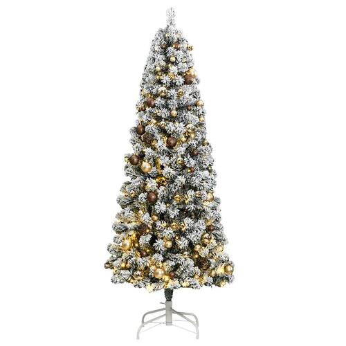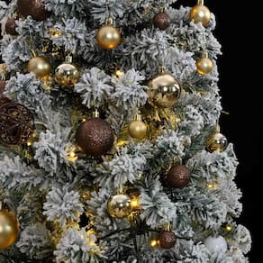 ?Decorações deslumbrantes?: A árvore é adornada com neve branca artificial e inclui um conjunto de ouro, bolas de Natal em bronze e ouro fosco em vários tamanhos para facilitar a decoração de bricolage