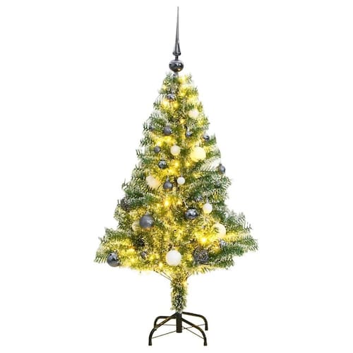 - Lindas decorações incluídas: Árvore de Natal artificial lindamente decorada com neve artificial branca e bolas de Natal brilhantes em vários tamanhos, aprimorando a estética festiva - Robusto e estável: Equipado com um suporte de metal resistente que fornece à árvore de Natal a estabilidade ideal para uma exibição sem preocupações